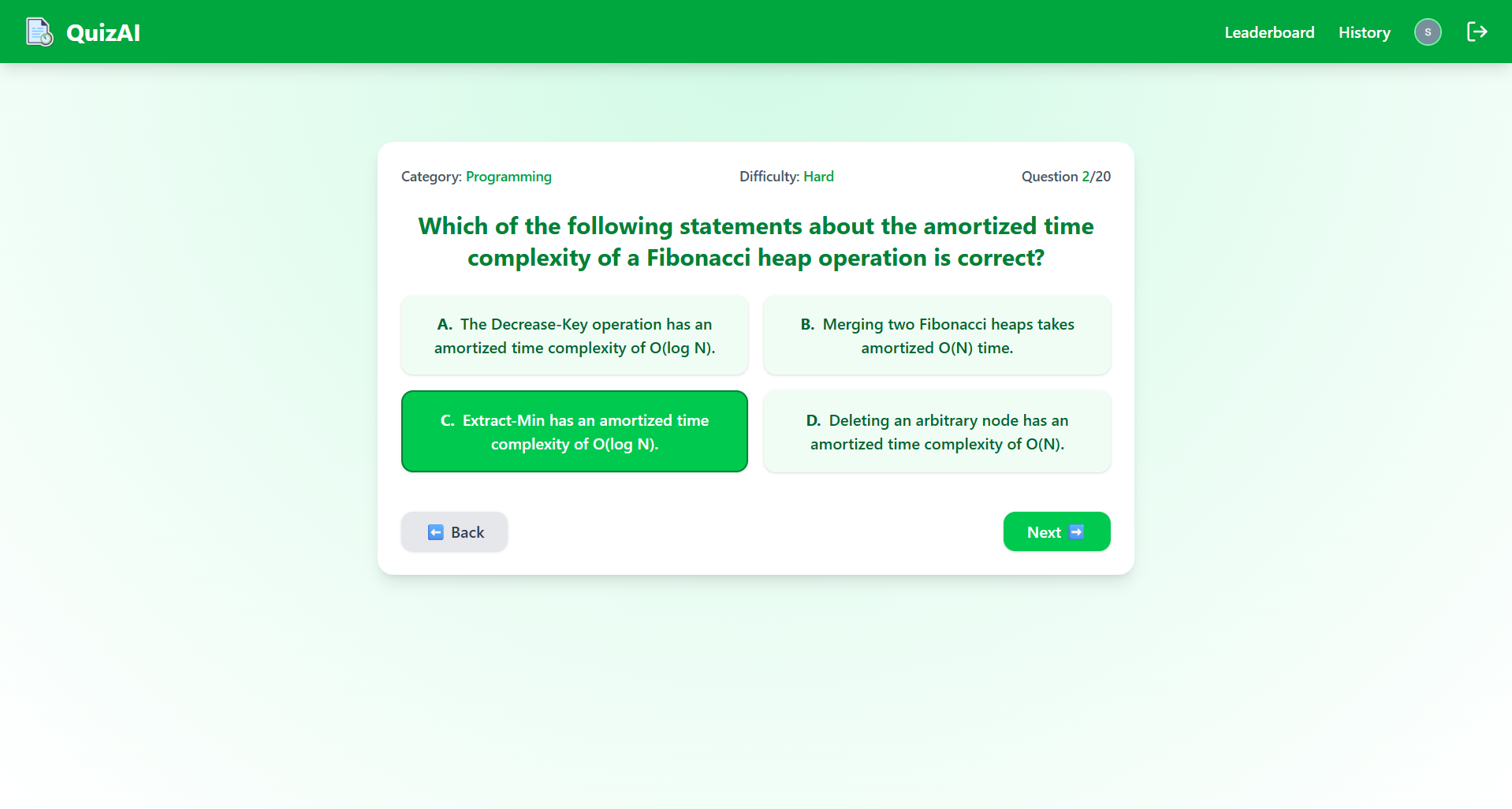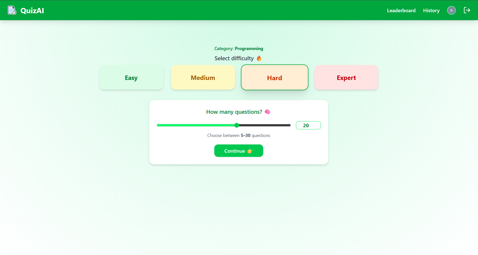Quiz AI is a full-stack web application built with React and a Node.js backend that uses the Google Gemini API to generate quizzes dynamically. The application includes Firebase Authentication for user login and securely stores quiz data using Firebase. Users can generate quizzes based on selected categories and difficulty levels, making the platform interactive and intelligent.